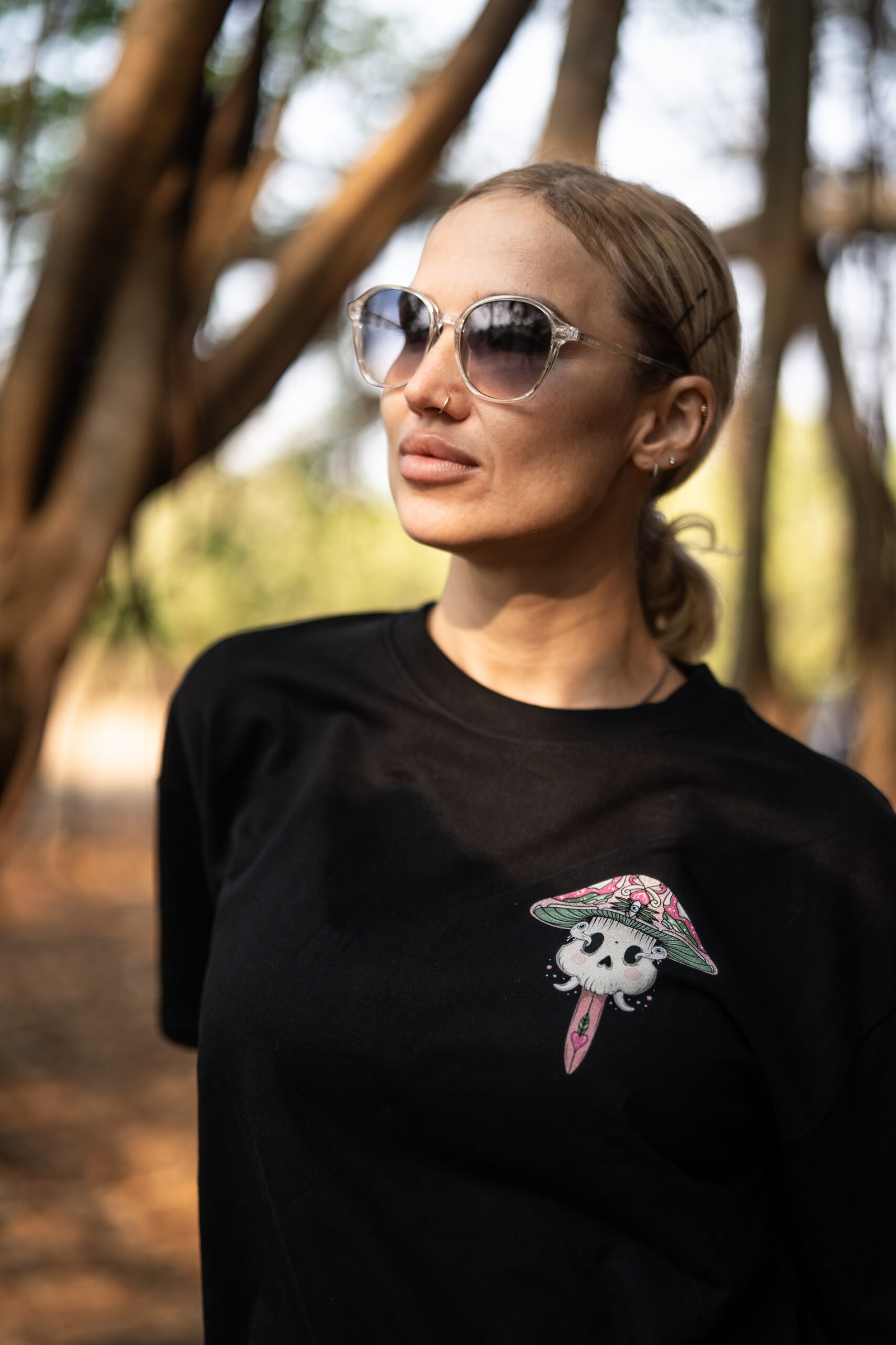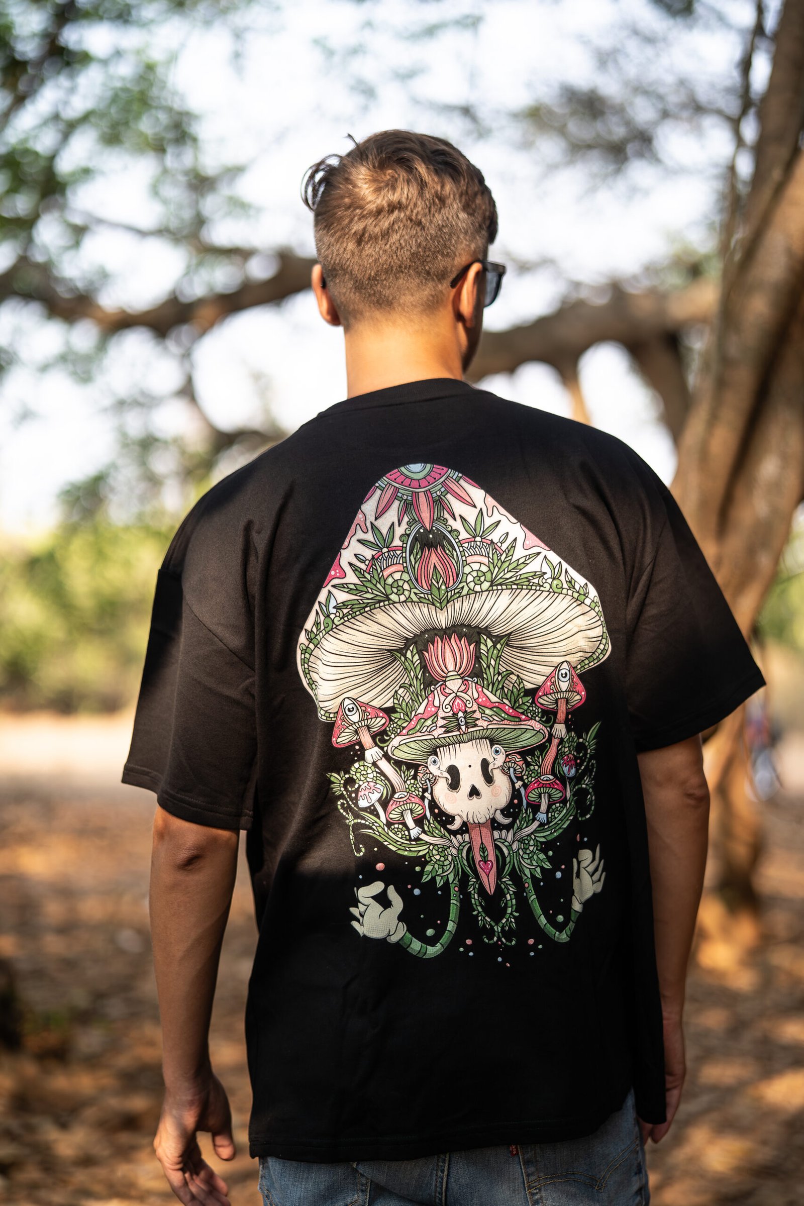 MAGIC MUSHROOM Black Oversized T-Shirt